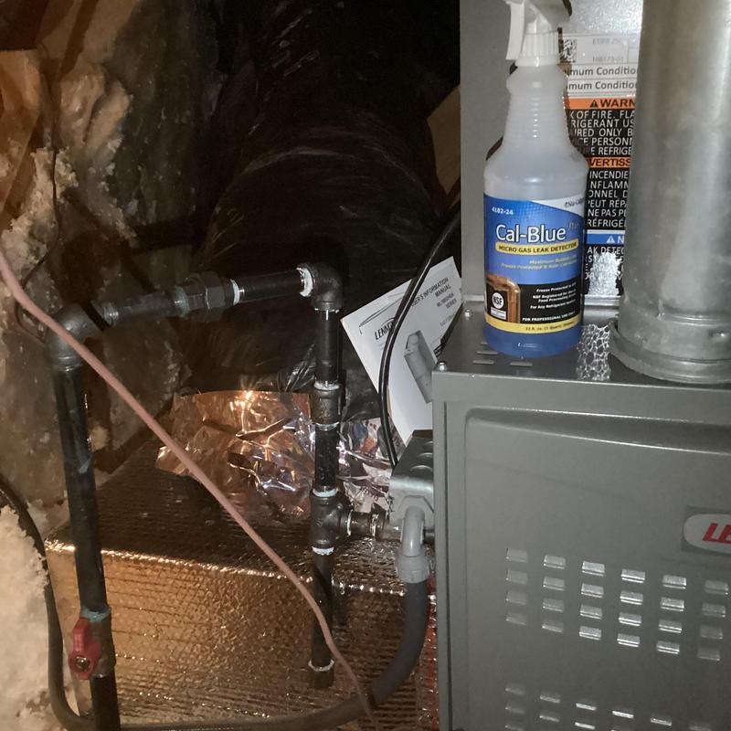 A technician in Smyrna, Tennessee inspected a customer’s gas furnace and water heater following a high gas usage report. The furnace and electric water heater showed no faults. A gas leak was found at the meter shut-off connection. The issue was documented and referred to the gas company for further action.
