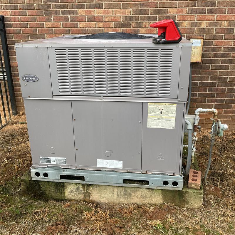 Solace Heating and Air completed routine maintenance on a gas package unit in White House, Tennessee. The technician confirmed the system heated and cooled correctly and discussed the findings with the homeowner.