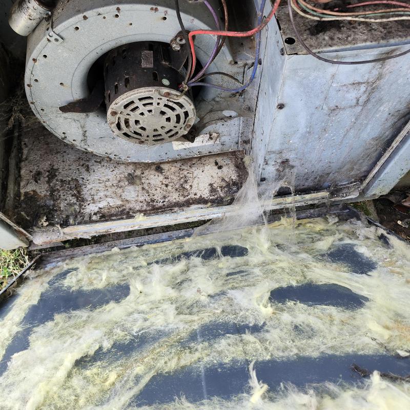 Solace Heating and Air completed fall maintenance on a Trane gas package system in North Carolina. Technicians removed a wasp nest from the inducer motor, inspected all heating components, and confirmed the unit operates correctly. The system is now ready for the colder season and functioning as expected.