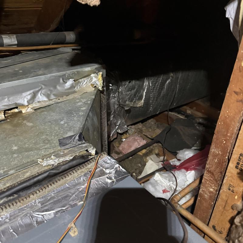 Solace Heating and Air inspected a malfunctioning HVAC system in an unidentified location and found damage in the return duct. Technicians determined that the existing flex pipe had holes and recommended replacing it with hard pipe to restore proper airflow.