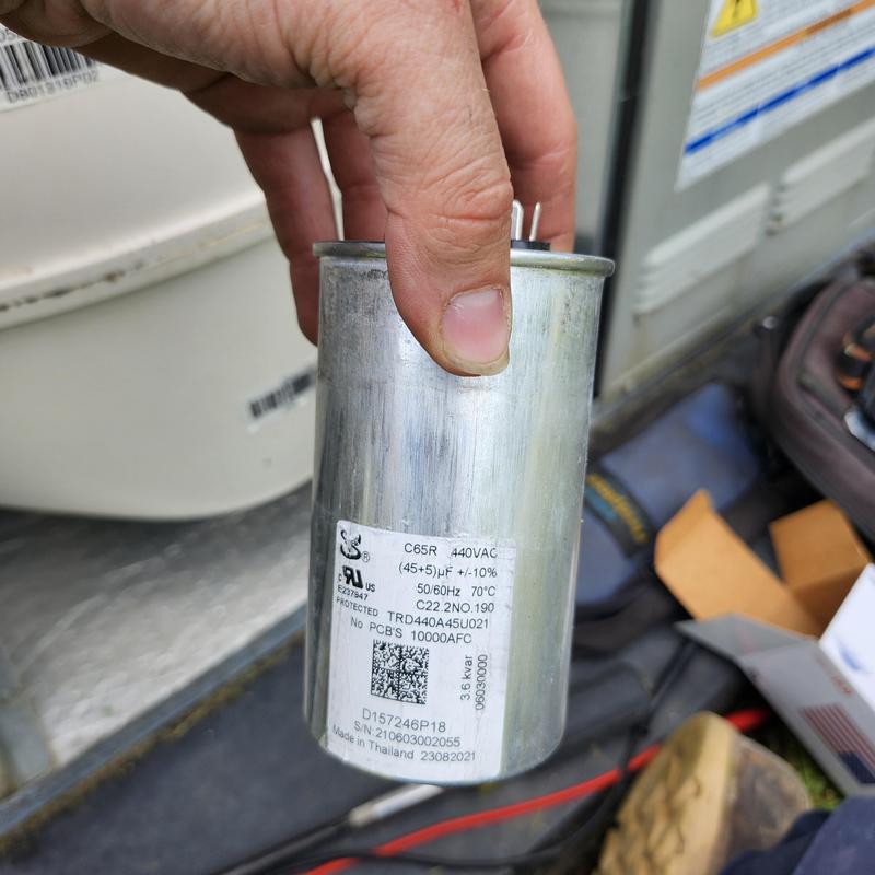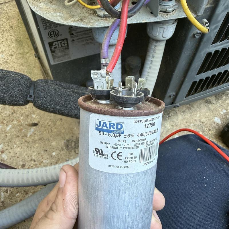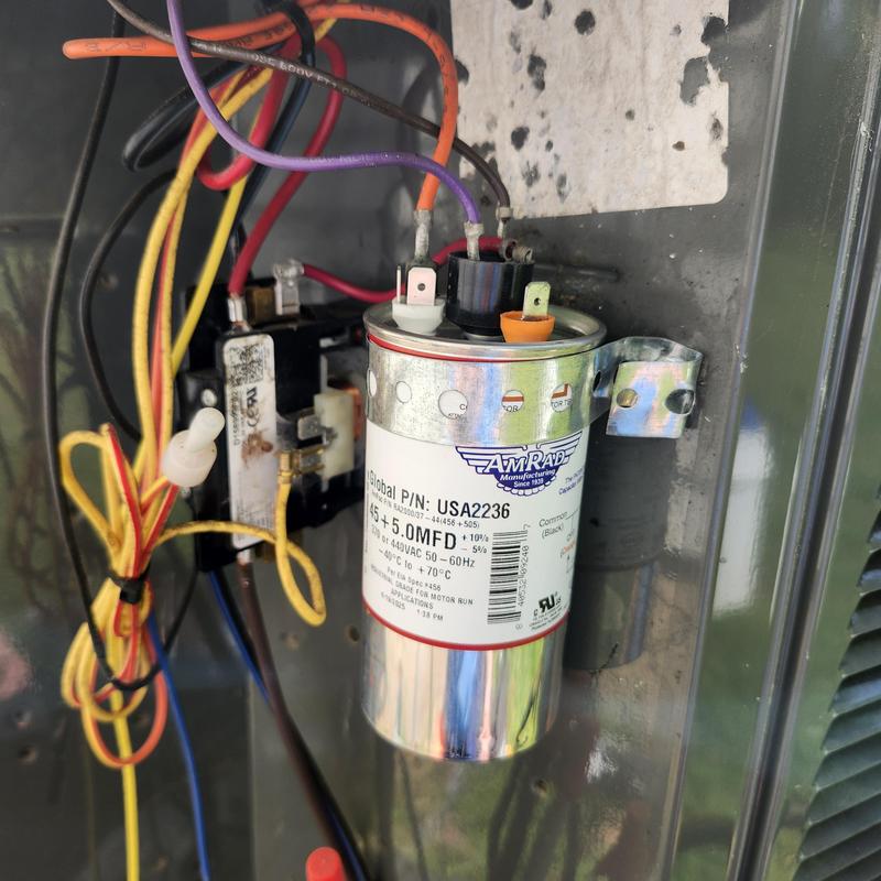 Solace Heating and Air replaced a dual capacitor under warranty in Humboldt, TN. They tested the unit to confirm it operates correctly after the replacement.