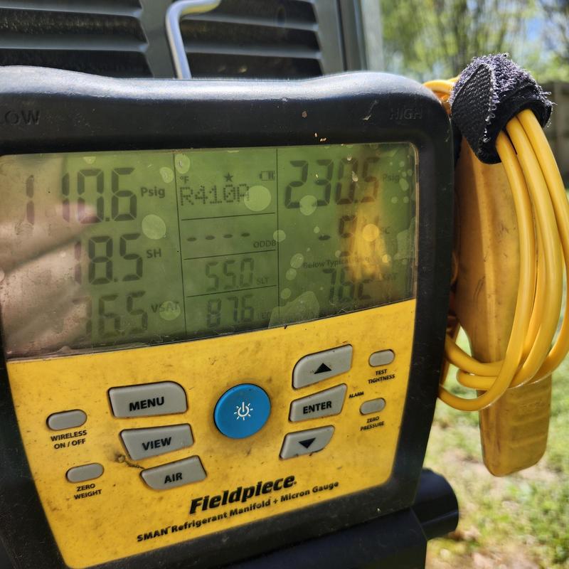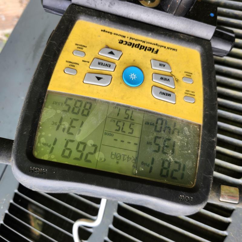 Solace Heating and Air inspected an air conditioning unit in Lansing, Michigan. They found the Freon level was two to three pounds low, reducing cooling efficiency. The technician provided a quote for a new unit to the customer.
