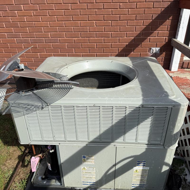 Solace Heating and Air in Yuma, TN diagnosed a no cooling issue on a 2000 split unit and found a broken condenser fan blade. They provided the customer with repair options to restore the unit’s cooling function.