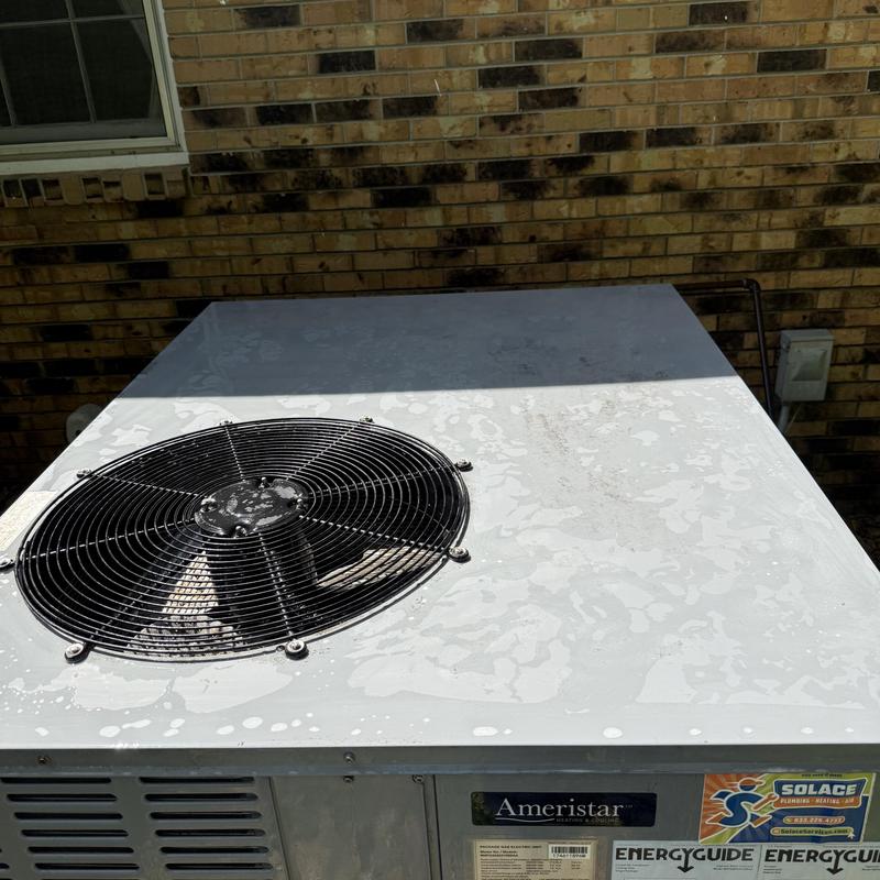 Solace Heating and Air performed a maintenance tune-up on a 2017 Ameristar HVAC system in Jackson, TN. They inspected wiring, capacitors, and control boards, cleaned the evaporator and condenser coils, and verified the Freon levels were correct and the system operated properly.