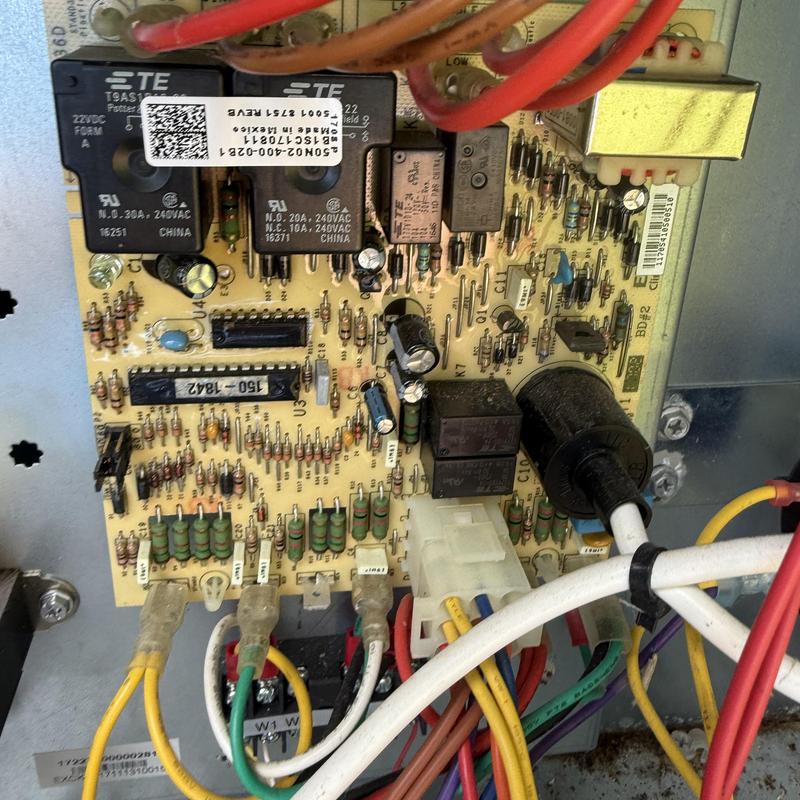 Solace Heating and Air replaced a failed control board under warranty in a residential HVAC unit. After installation, technicians tested the system to confirm proper operation. All functions performed as expected following the repair. Location information is not available for this service.