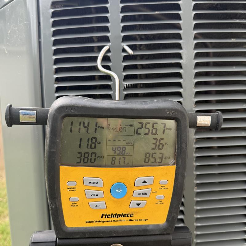 Solace Heating and Air completed a winter heating tune-up on a 2020 Trane split heat pump in Fort Smith, Arkansas. Technicians checked motor performance, confirmed refrigerant pressures were correct, and ensured the defrost cycle functioned properly. This maintenance helps maintain system reliability during colder months.