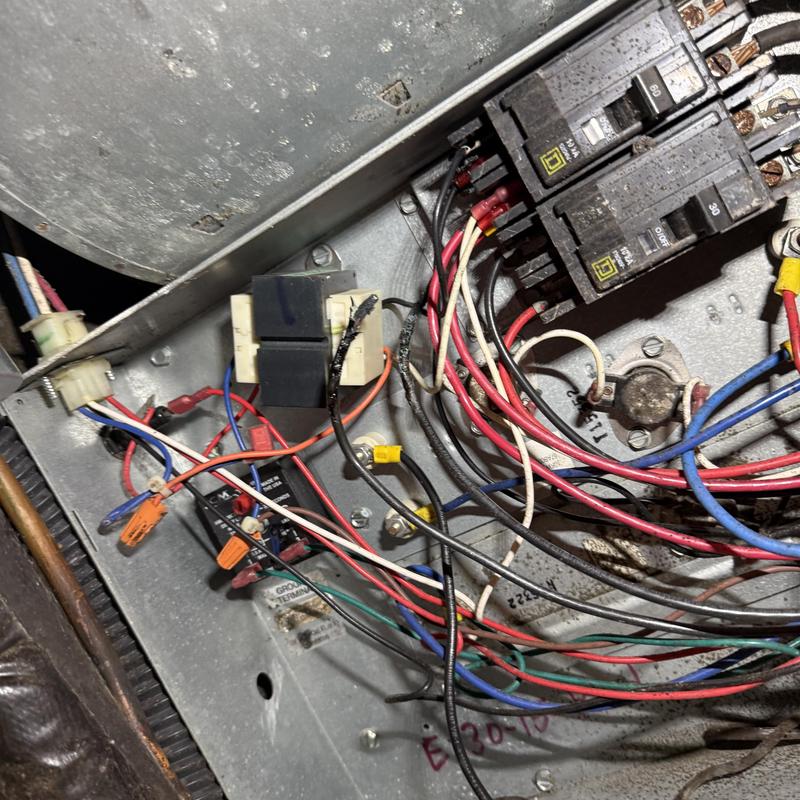 Solace Heating and Air repaired a blown 24V three-amp fuse, inspected system components, tightened all connections, and tested heating, cooling, and strip heat functions. The unit operated efficiently after service. This HVAC maintenance was performed in an unspecified location.