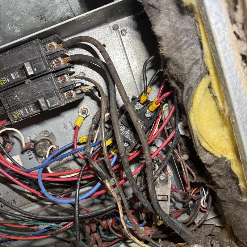 Solace Heating and Air repaired burnt wires on heat strips in a mobile home unit in Medon, TN. After replacing the damaged wires, they tested the heating system to ensure it worked properly.