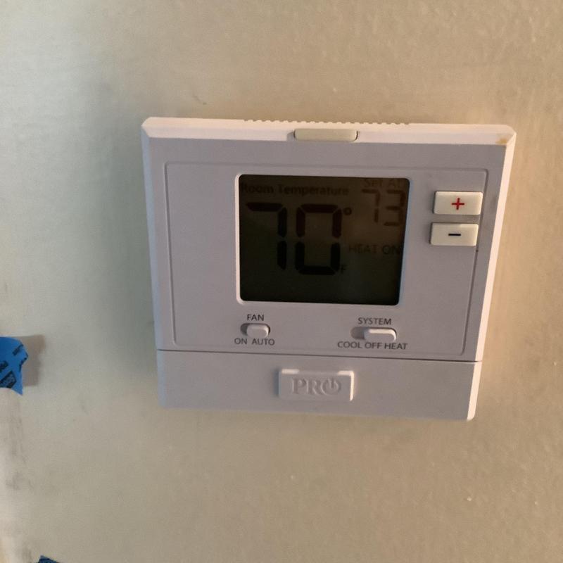 A technician in Bartlett, Tennessee replaced a faulty thermostat that was disrupting the blower motor during heat mode. After installation and blower setting adjustments, the heating system resumed normal operation.