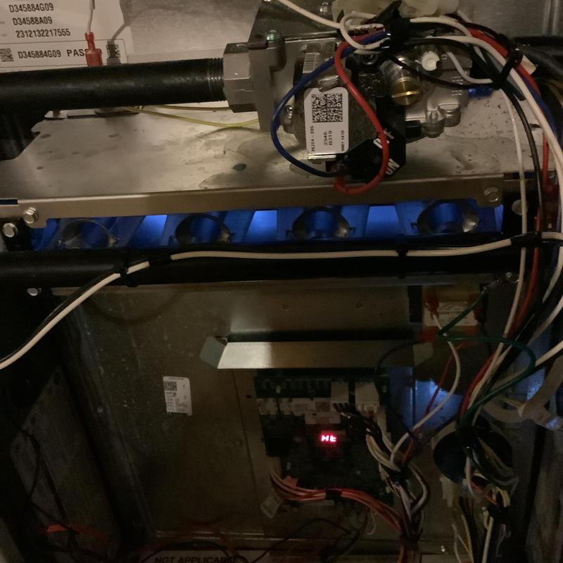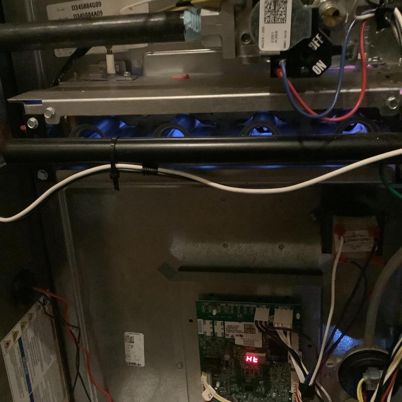 Solace Heating and Air inspected a home heating system in Germantown, Tennessee. Technicians tested electrical components, cleaned filters and coils, and restored normal heat by clearing an obstruction from the pressure switch. The system was confirmed to be heating and operating properly.