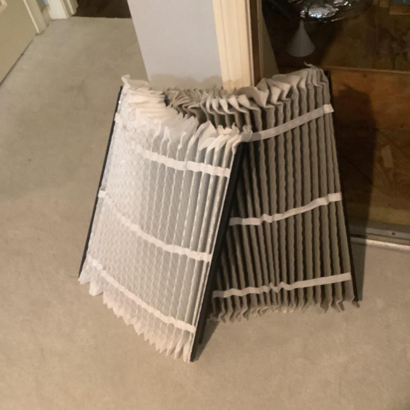 Solace Heating and Air inspected electrical components, blower wheels, and a-coils for two HVAC systems in Germantown, Tennessee. Technicians confirmed all parts met manufacturer standards, replaced two customer-provided 16x25x1 filters, and verified that both units operated and cooled correctly.