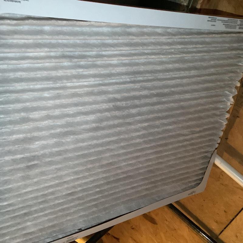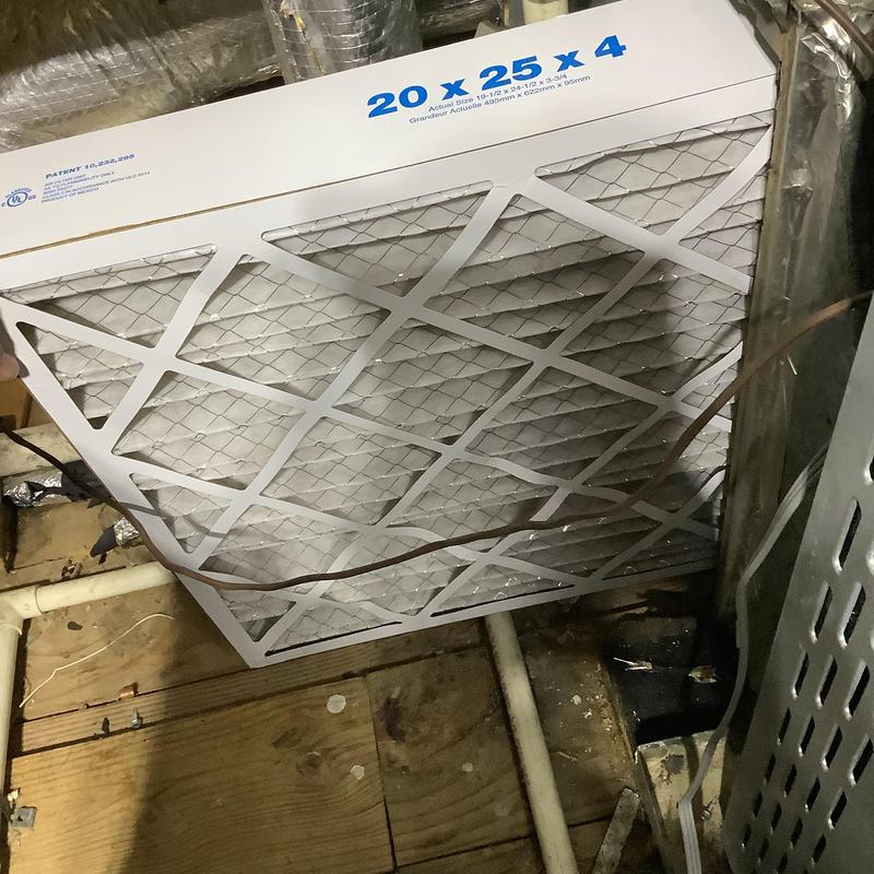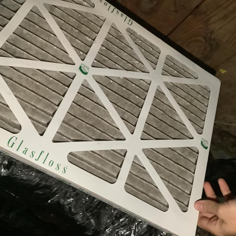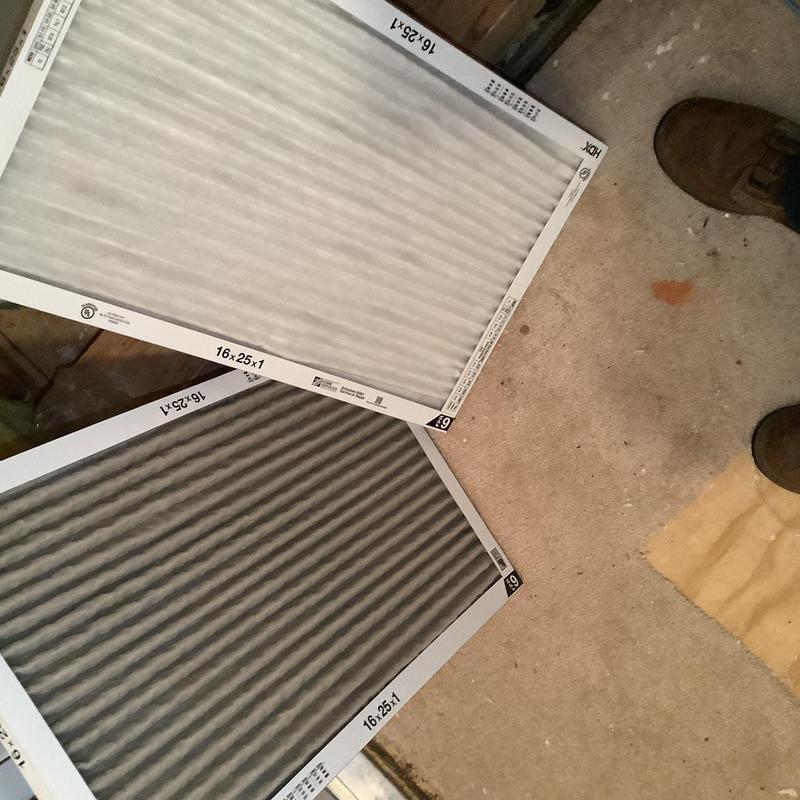 A technician replaced a clogged 16x25x1 air filter that was restricting airflow and reducing cooling performance. After the filter replacement, the HVAC unit resumed normal operation. Service completed by Solace Heating and Air in Fayetteville, North Carolina.