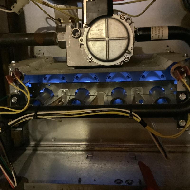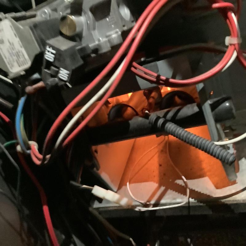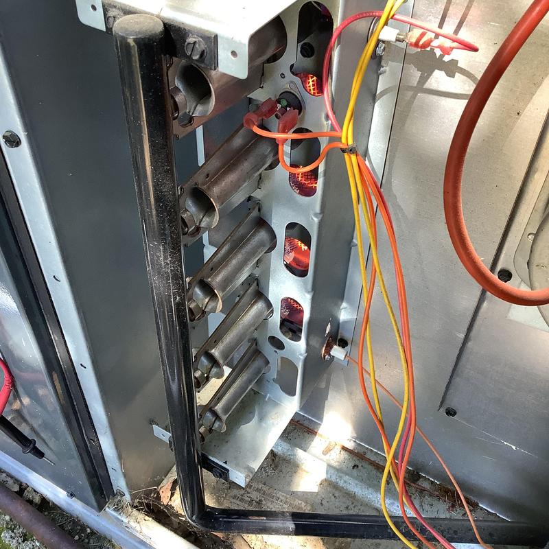 A technician in Germantown, Tennessee inspected all electrical connections and components of a heating unit. They confirmed operation within manufacturer specifications, replaced a 16x25x1 air filter provided by the customer, examined the blower wheel and a-coil, and verified the system was operating and heating correctly.