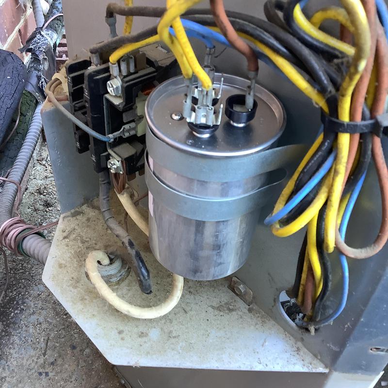 A technician replaced a faulty contactor and capacitor in an air conditioning unit in Memphis, Tennessee. After the repair, the system resumed normal operation and cooling.