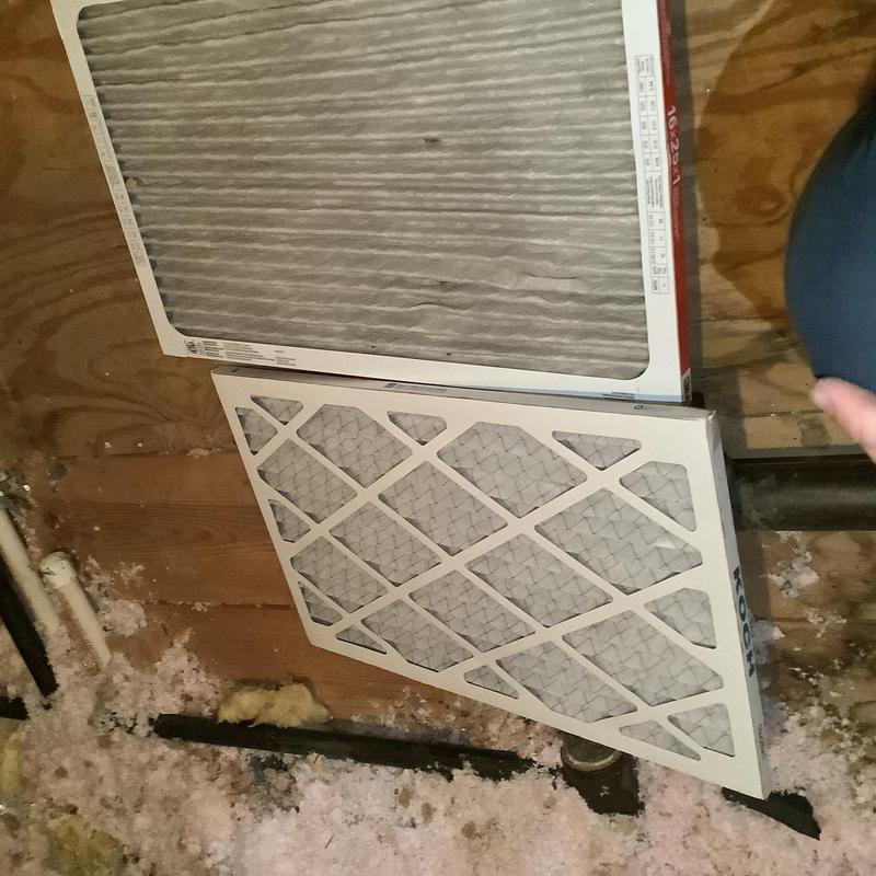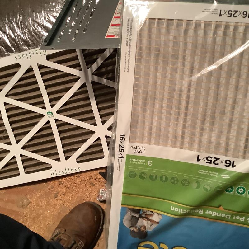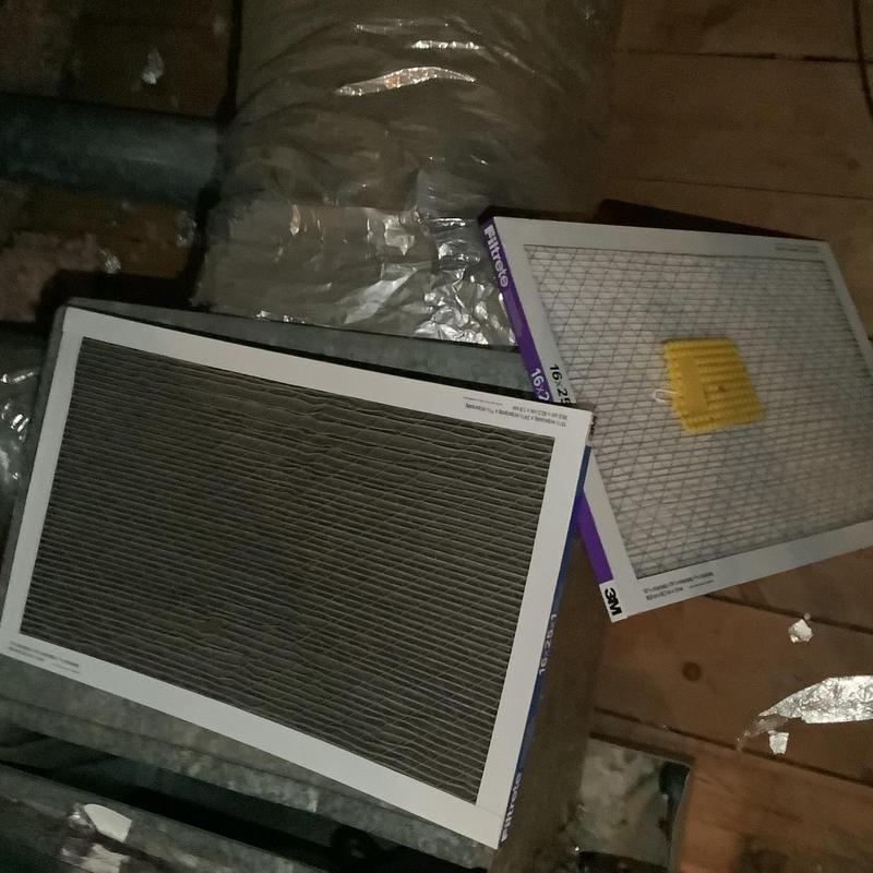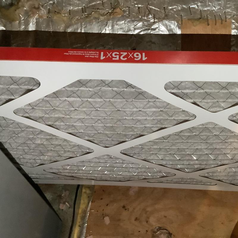 A technician in Collierville, Tennessee replaced a clogged 16x25x1 air filter that was preventing proper cooling. After installing a customer-provided replacement filter, the HVAC unit resumed normal operation and cooling.