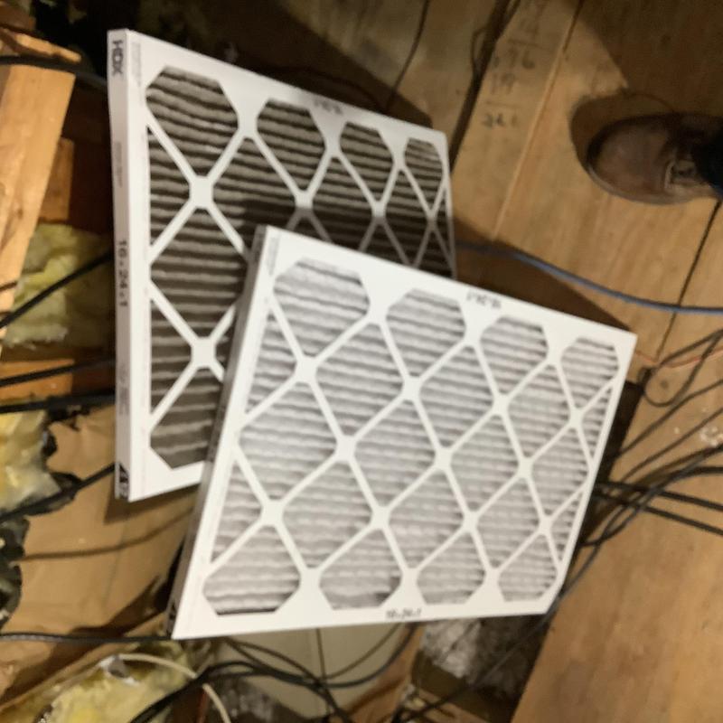 Solace Heating and Air inspected electrical components for two HVAC systems in Germantown, Tennessee. Technicians tested blower wheels, filters, and A-coils, and replaced one 16x25x1 filter upstairs. Both systems were verified to operate and heat correctly according to manufacturer specifications.