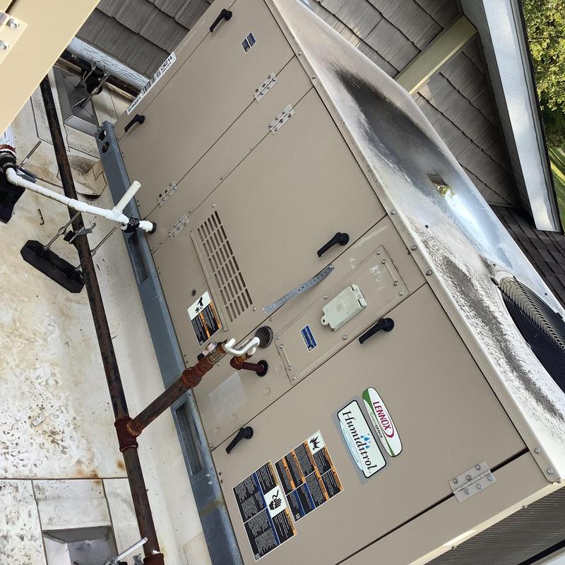 A technician from Solace Heating and Air inspected a commercial HVAC unit in Horn Lake, Mississippi. They confirmed normal cooling operation, secure electrical connections, and correct refrigerant levels. No issues were found during the evaluation, and the system continues to run as expected.