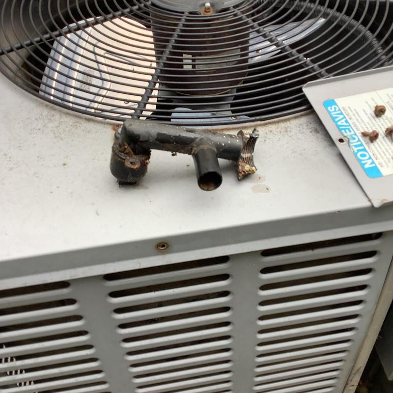 A technician in Atoka, Tennessee repaired a damaged copper line set on an outdoor AC unit after improper welding caused significant leaks. The system was restored to factory specifications and is now working properly.