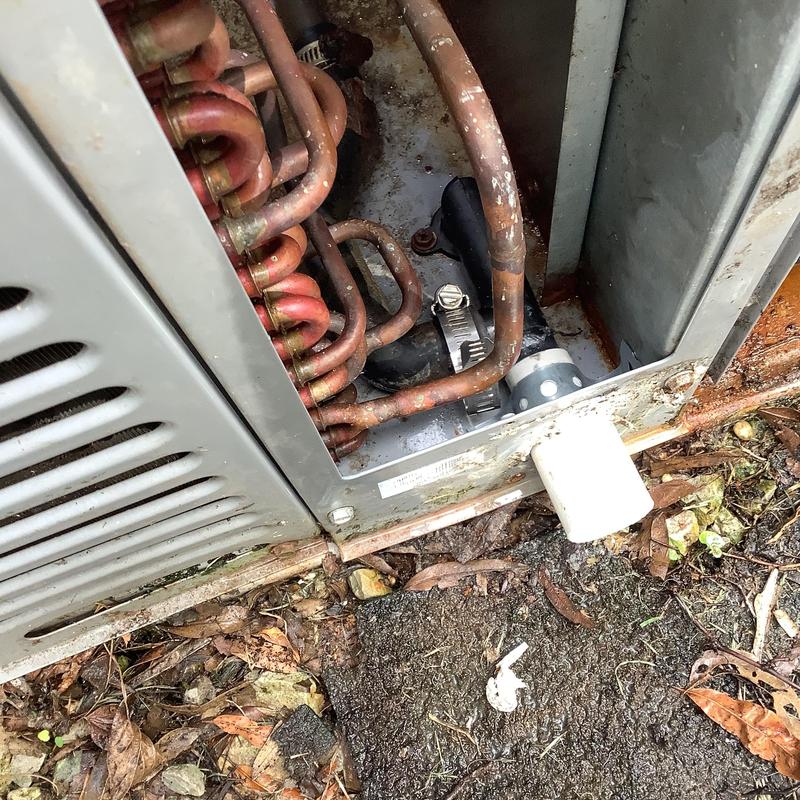 Solace Heating and Air corrected an improperly pitched float switch on a condensate drain in Memphis, Tennessee. The team used metal strapping to adjust the drain slope, preventing water backflow and restoring normal HVAC function.