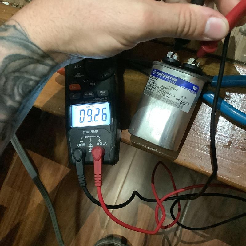 A technician in Memphis, Tennessee replaced a failing 455mfd capacitor affecting both the fan and compressor sides of an HVAC unit. After the replacement, the system resumed normal cooling operation.