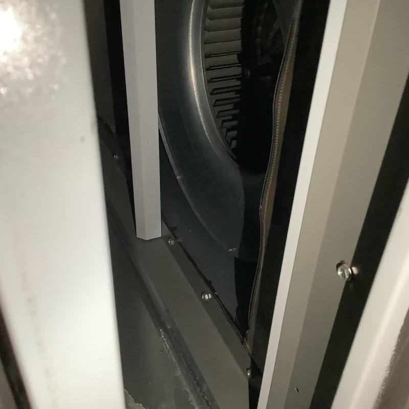 Technicians inspected two industrial exhaust fans in Holly Springs, Mississippi, and found worn bearings. Both fans require full replacement due to bearing failure. Solace Heating and Air identified the issue during a service call and recommended new units to restore proper ventilation system function.