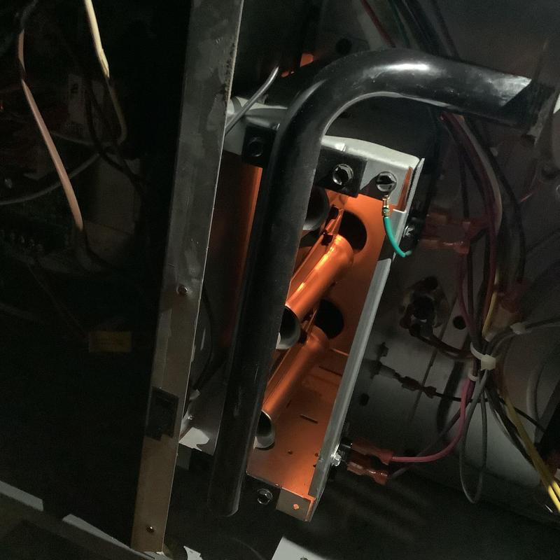 Solace Heating and Air inspected electrical components on a heating unit in Memphis, Tennessee. They confirmed all parts met manufacturer specifications, replaced a 20x25x1 air filter provided by the customer, and verified that the system's heating function operated normally.