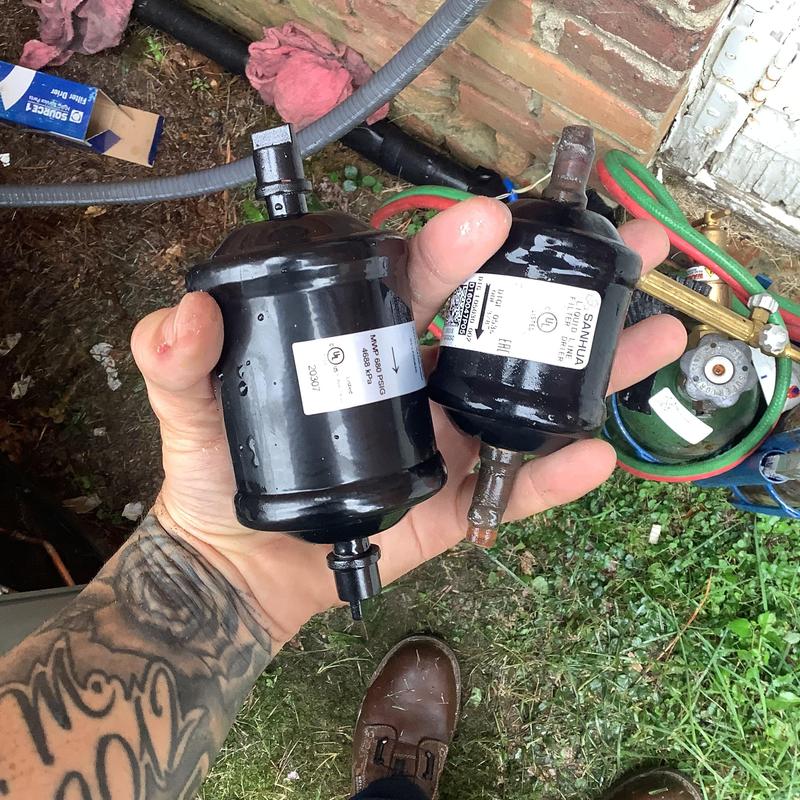 Solace Heating and Air located and repaired a refrigerant leak beneath the filter drier of a 3-year-old HVAC system in Memphis, Tennessee. The technician evacuated and recharged the system, restoring full function and resolving temperature issues for the homeowner.