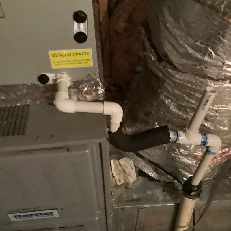 Solace Heating and Air corrected an improperly pitched float switch on a condensate drain in Memphis, Tennessee. The team used metal strapping to adjust the drain slope, preventing water backflow and restoring normal HVAC function.