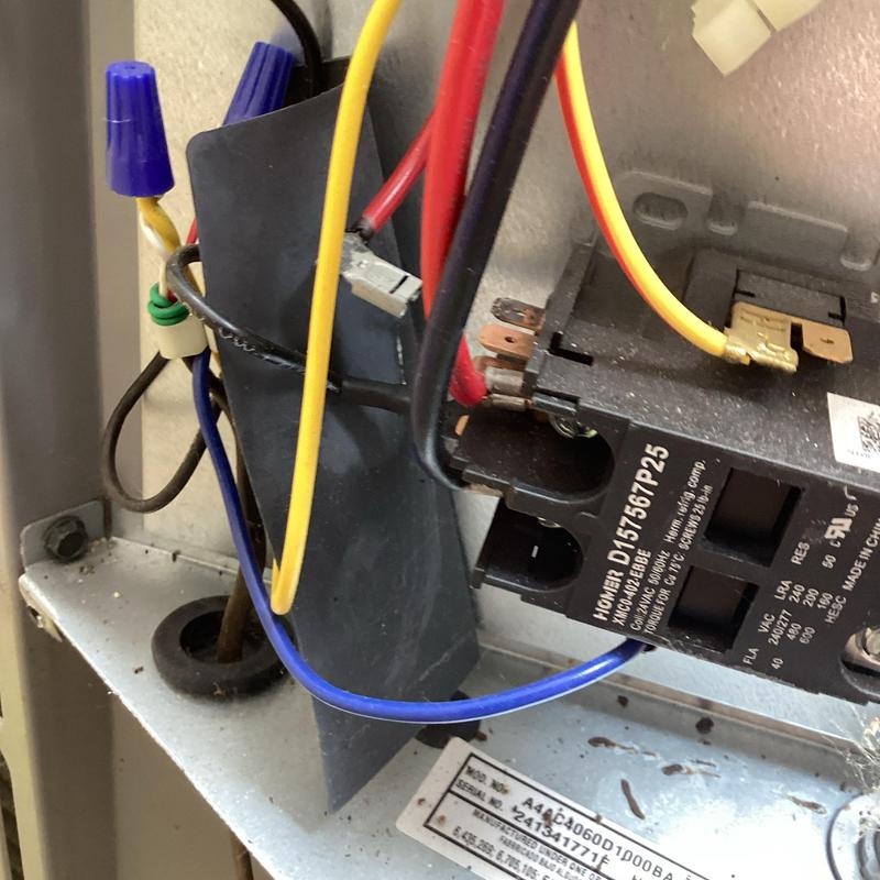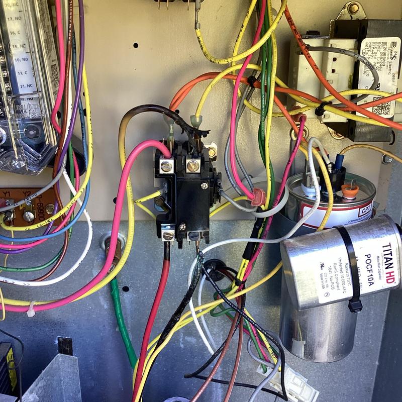 Solace Heating and Air replaced a damaged terminal block and repaired burnt wires at a condenser unit in Germantown, Tennessee. A melted connection caused the failure. Technicians removed and replaced faulty components to restore proper cooling system function.