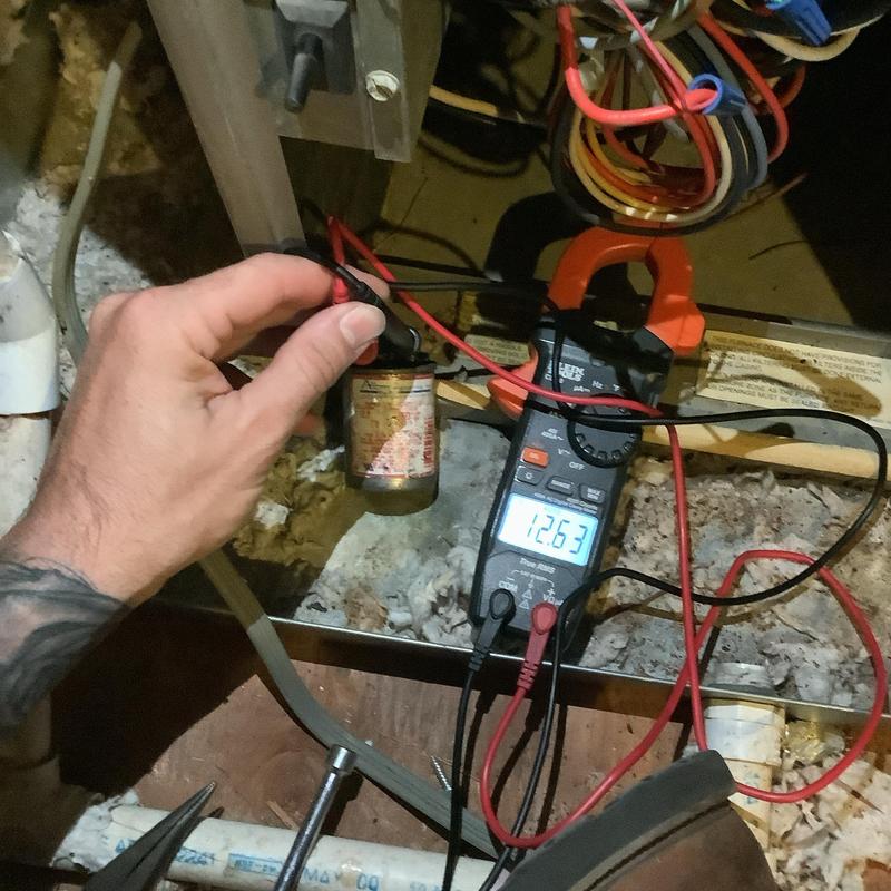 Solace Heating and Air inspected two HVAC systems in Olive Branch, Mississippi. The technician tested electrical components, replaced the downstairs air filter, and recommended a new blower capacitor due to low performance. Both systems were confirmed to be operating and heating correctly after evaluation.