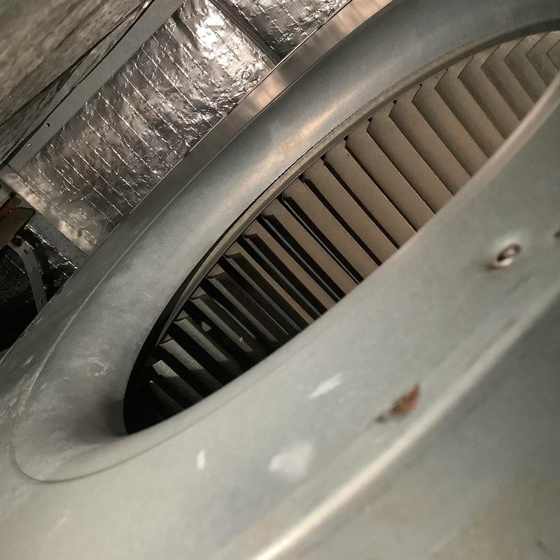 Technicians inspected two industrial exhaust fans in Holly Springs, Mississippi, and found worn bearings. Both fans require full replacement due to bearing failure. Solace Heating and Air identified the issue during a service call and recommended new units to restore proper ventilation system function.