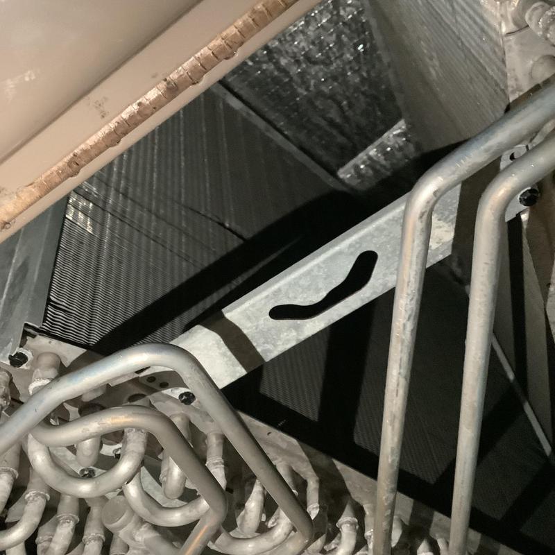 A technician inspected an HVAC unit in Southaven, Mississippi due to a noise near the evaporator coil. They identified a vibrating liquid line touching internal metal. After adjusting the line, the unit operated quietly. This service focused on diagnosing and resolving noise issues caused by internal contact within air conditioning systems.