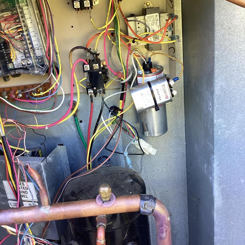 Solace Heating and Air replaced a 4-ton R410a compressor, contactor, and capacitor in Germantown, Tennessee. The team restored system function, and the unit now runs and cools properly.