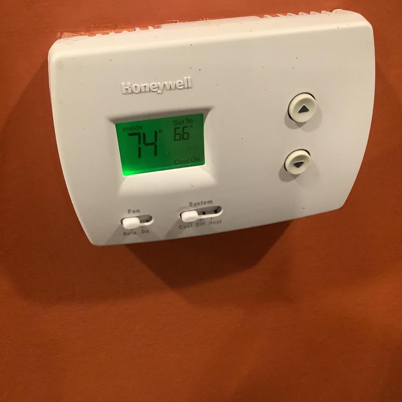 Solace Heating and Air replaced a faulty thermostat with a T-701 model in Germantown, Tennessee. The original unit had a short, and the new installation restored full system operation.