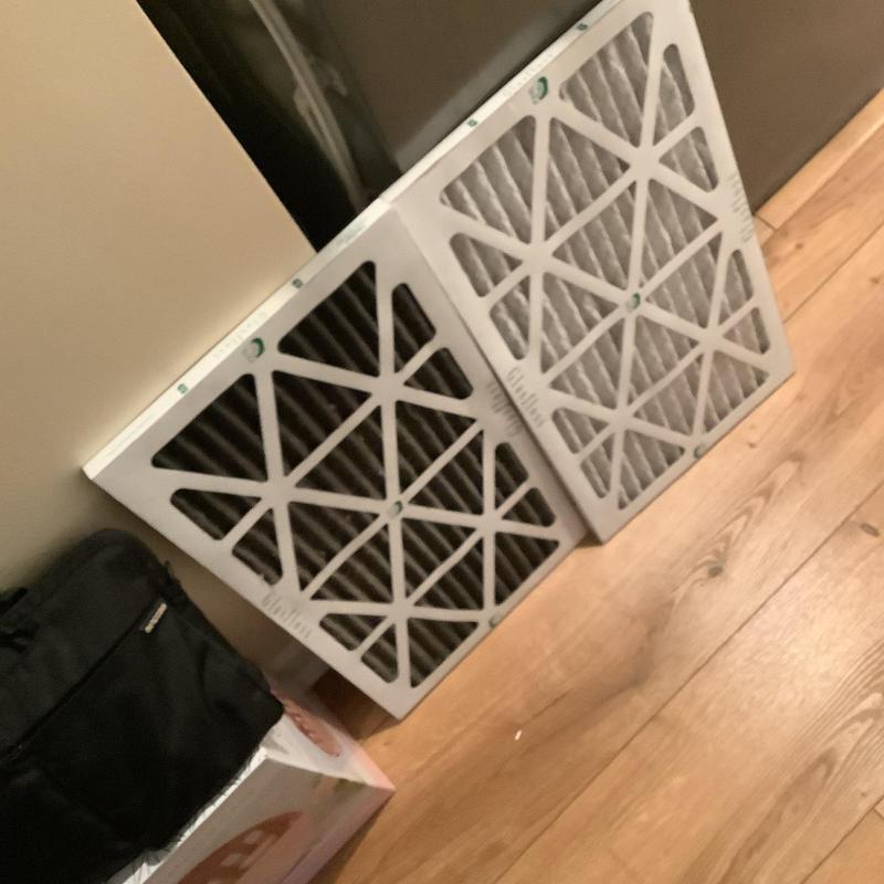 Solace Heating and Air inspected electrical components for two HVAC systems in Germantown, Tennessee. Technicians tested blower wheels, filters, and A-coils, and replaced one 16x25x1 filter upstairs. Both systems were verified to operate and heat correctly according to manufacturer specifications.