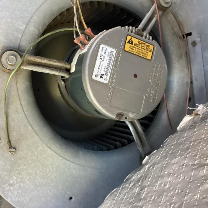 Solace Heating and Air inspected a faulty blower motor showing intermittent problems in Bartlett, Tennessee. The team diagnosed the issue and scheduled a follow-up visit to install the replacement motor the next day due to Sunday service limitations.