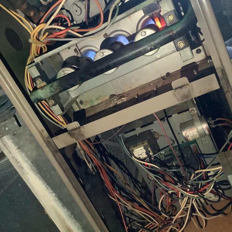 Solace Heating and Air completed heating system preventative maintenance in Bartlett, Tennessee. The technician inspected electrical connections, component amperage, safety features, and the heat exchanger. The downstairs unit showed signs of aging metal that may lead to carbon monoxide leaks. The overall system, at 18 years old, is showing signs of mechanical wear.
