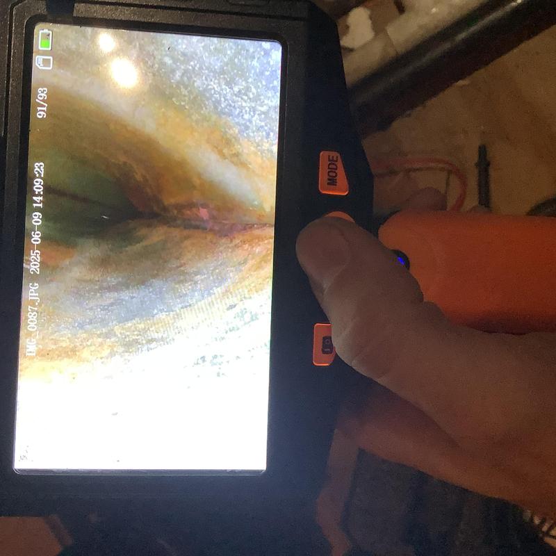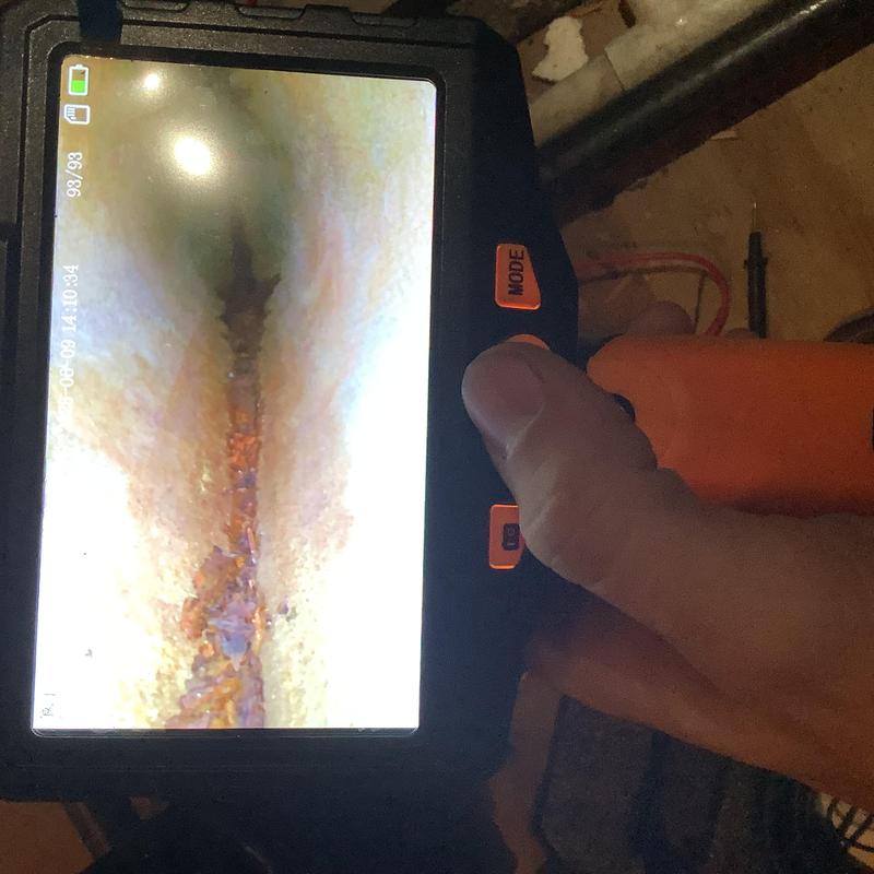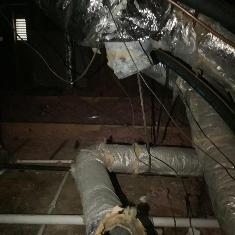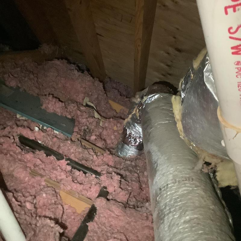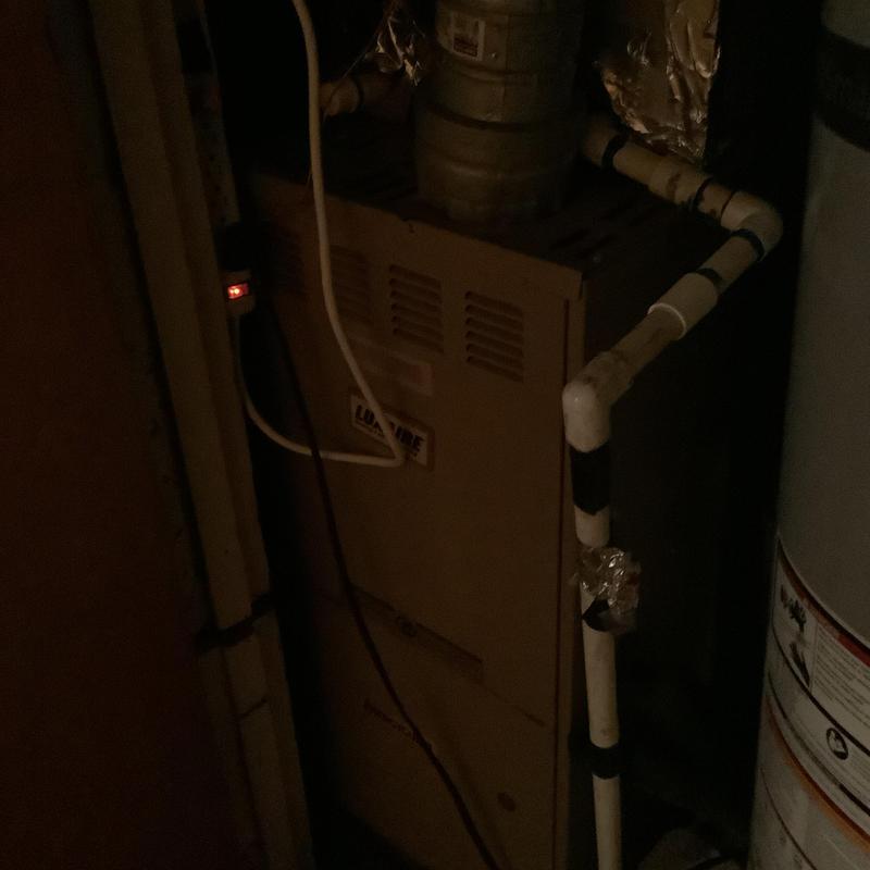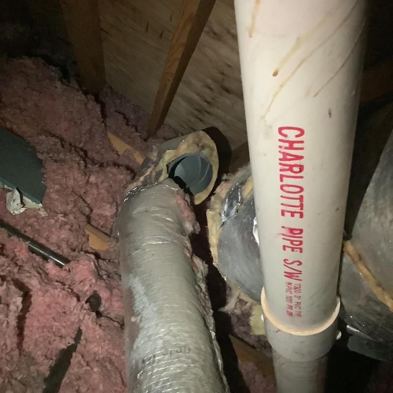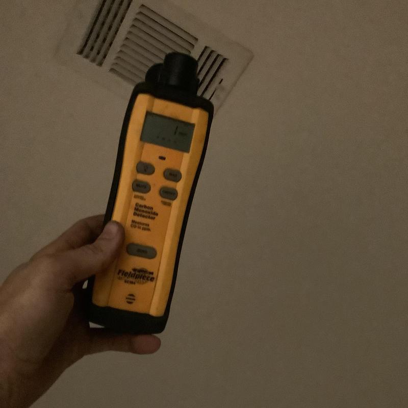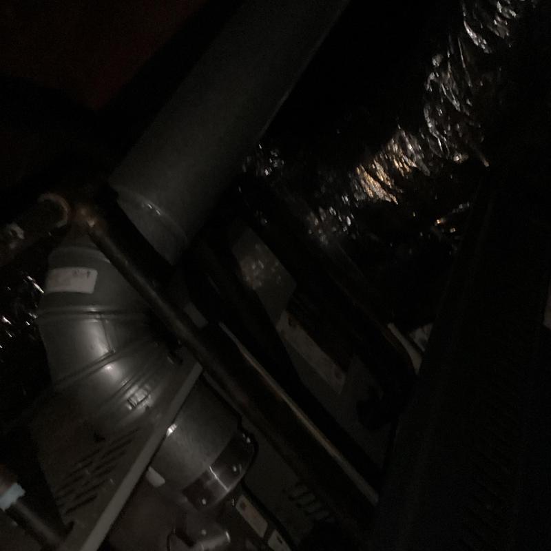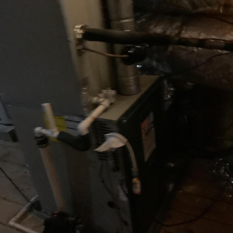 A technician in Bartlett, Tennessee inspected an upstairs HVAC system with a full drain pan. They identified a disconnected vent pipe and replaced faulty flue sections. After securing the connections and conducting a carbon monoxide test, they restored normal heating. A plumber was called to address a possible blockage further in the drain line.