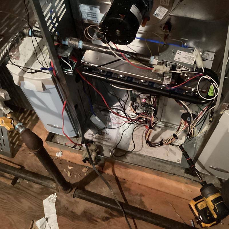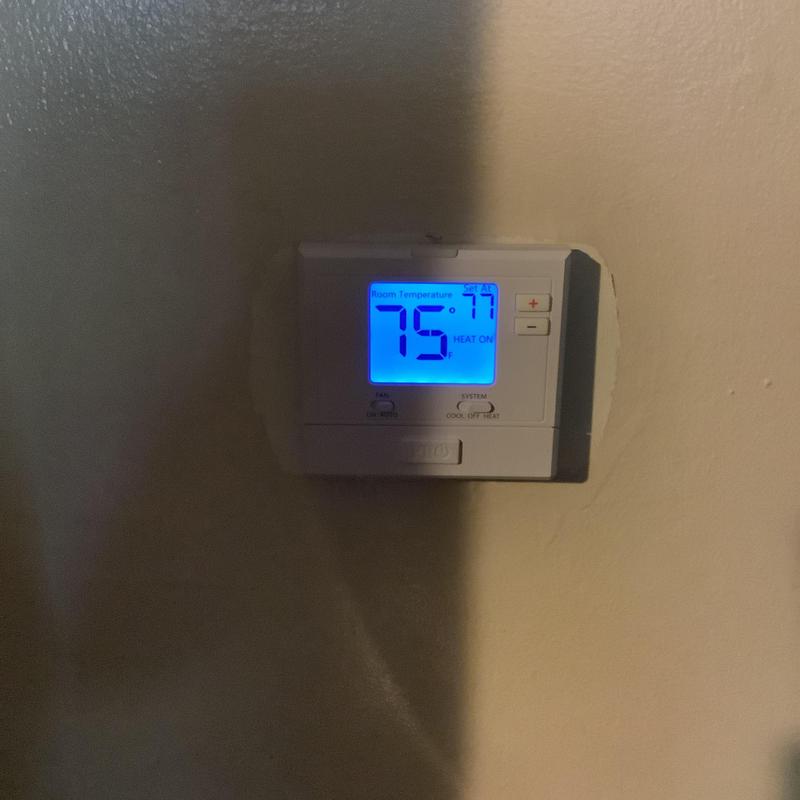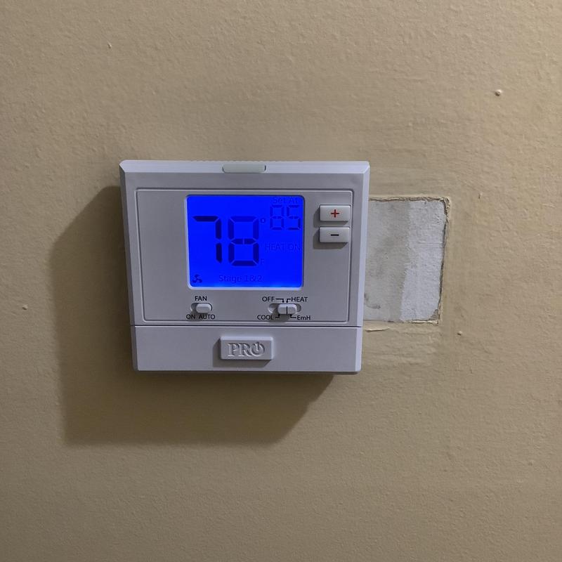 A technician in Bartlett, Tennessee replaced a faulty thermostat that was disrupting the blower motor during heat mode. After installation and blower setting adjustments, the heating system resumed normal operation.