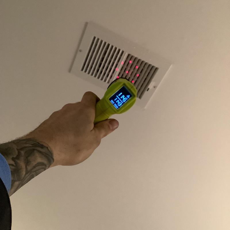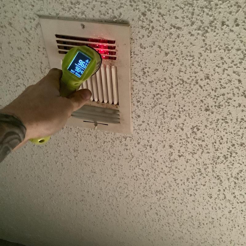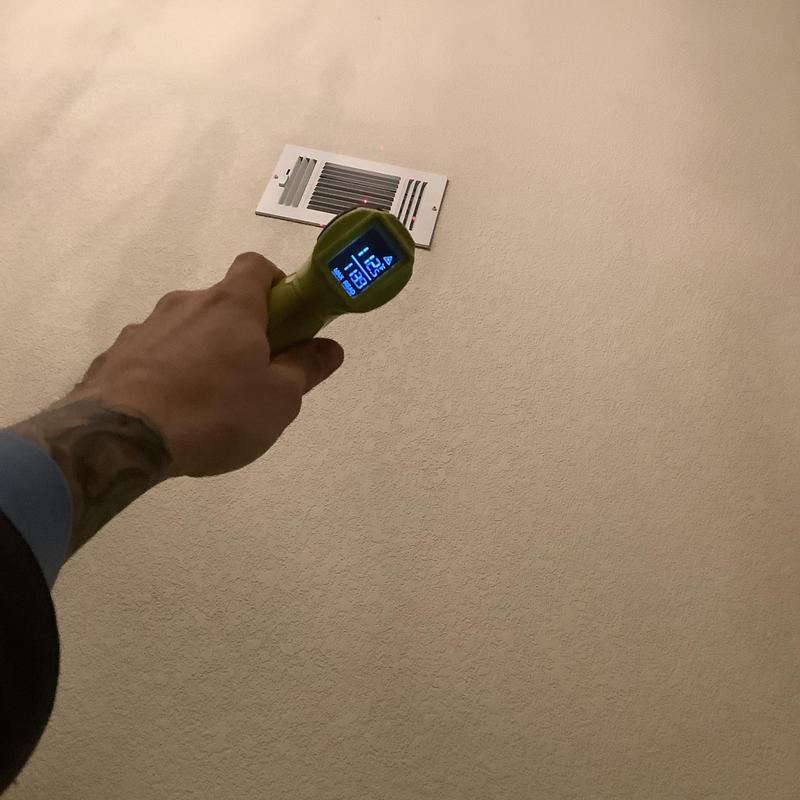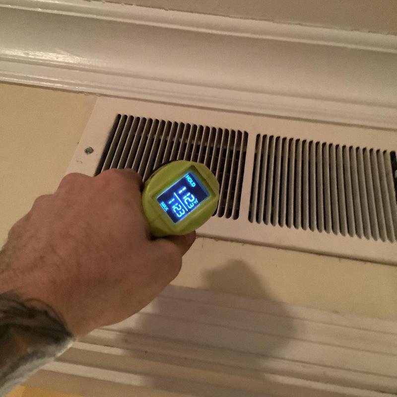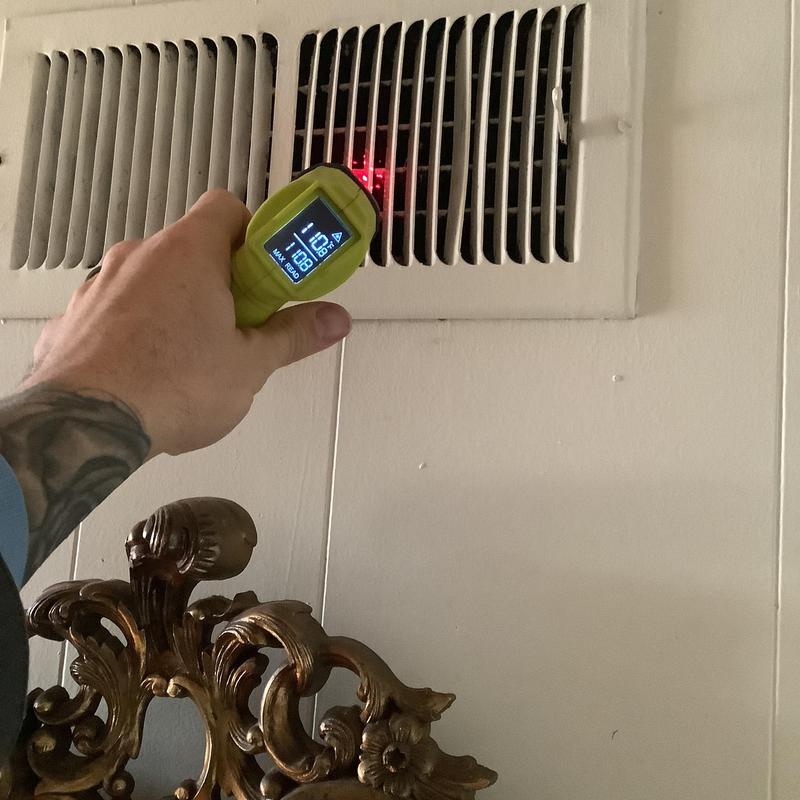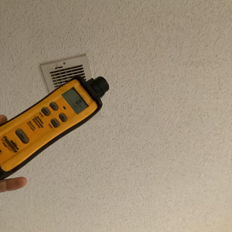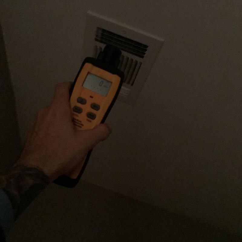 Solace Heating and Air conducted HVAC service in Raleigh, NC, which included temperature and airflow testing at ceiling vents using specialized meters. The technician also inspected and tested components inside the furnace, and replaced the air filters with new Filtrete 16x20x1 filters to maintain system efficiency.