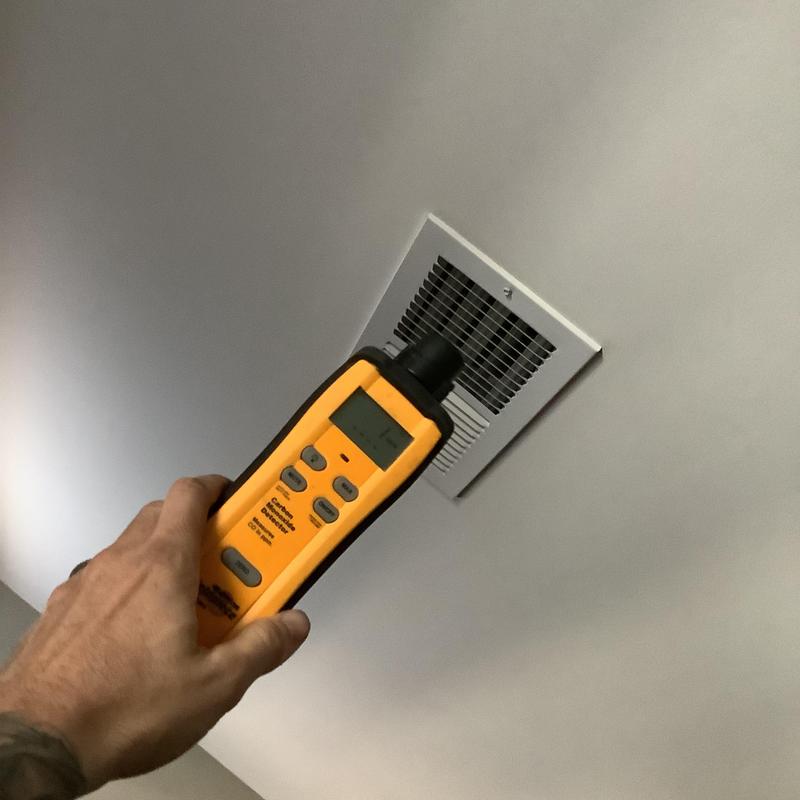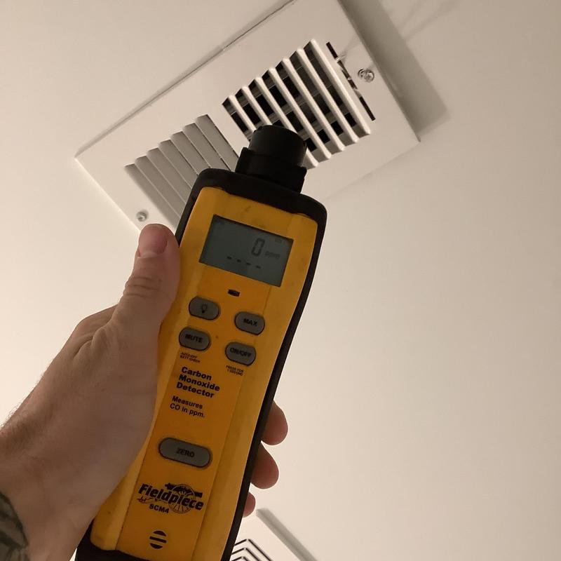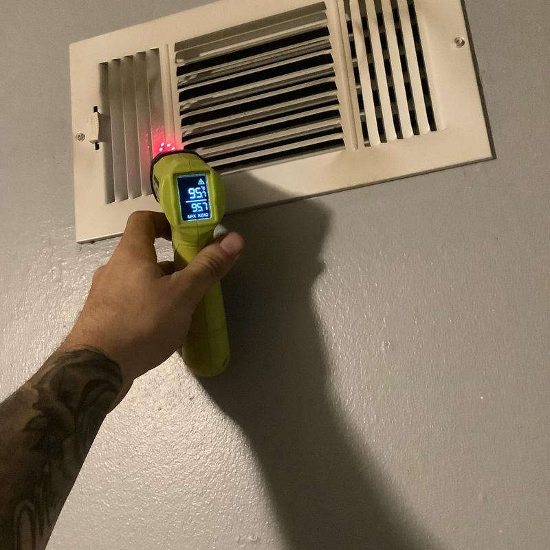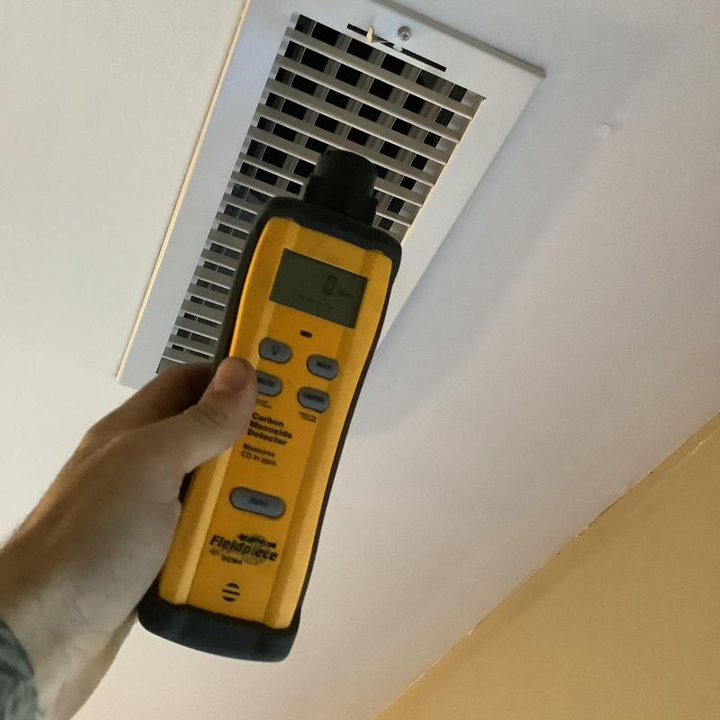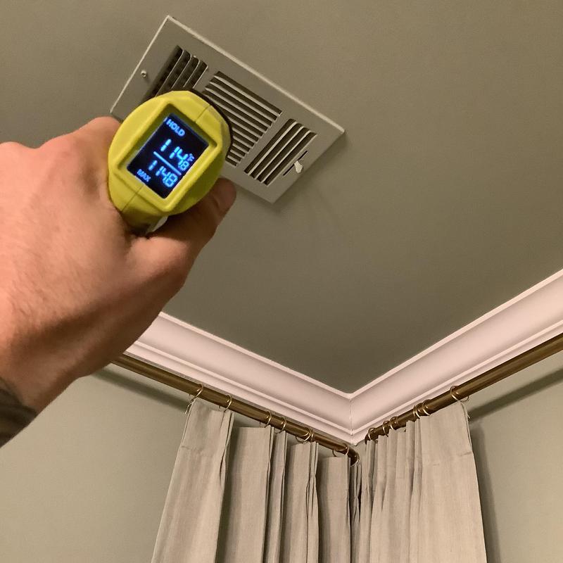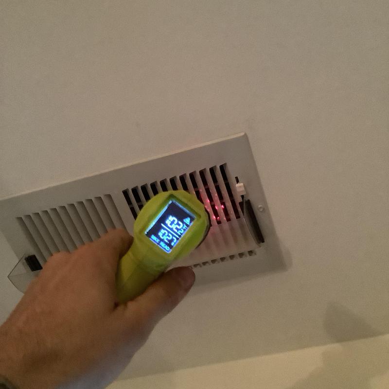 Solace Heating and Air conducted HVAC service in Raleigh, NC, which included temperature and airflow testing at ceiling vents using specialized meters. The technician also inspected and tested components inside the furnace, and replaced the air filters with new Filtrete 16x20x1 filters to maintain system efficiency.