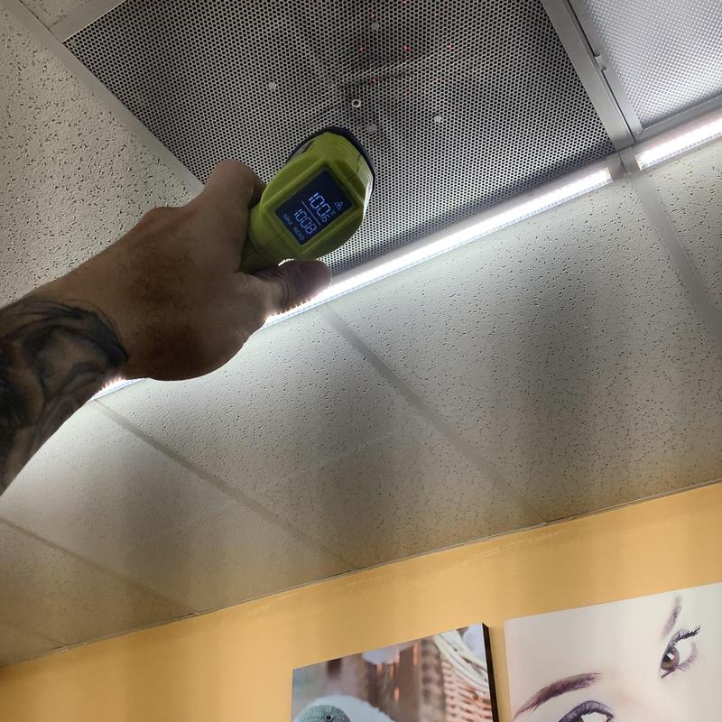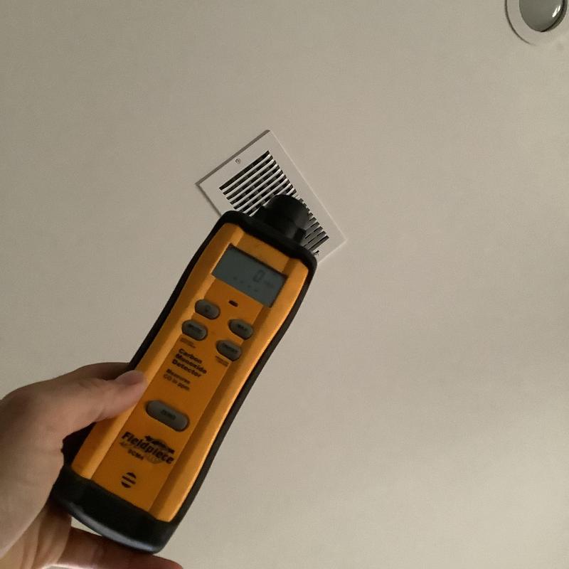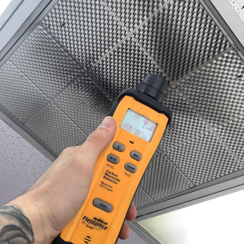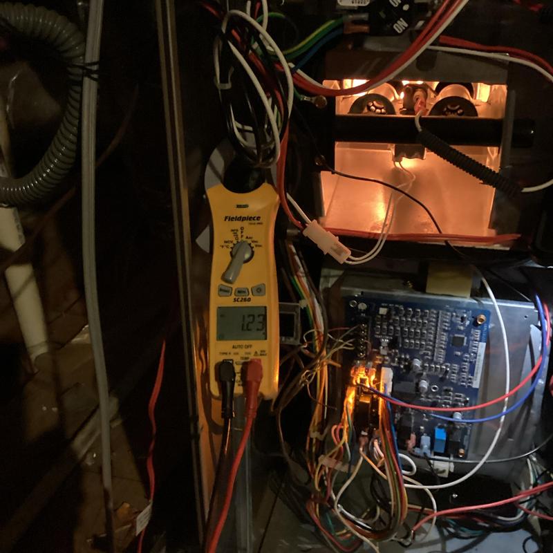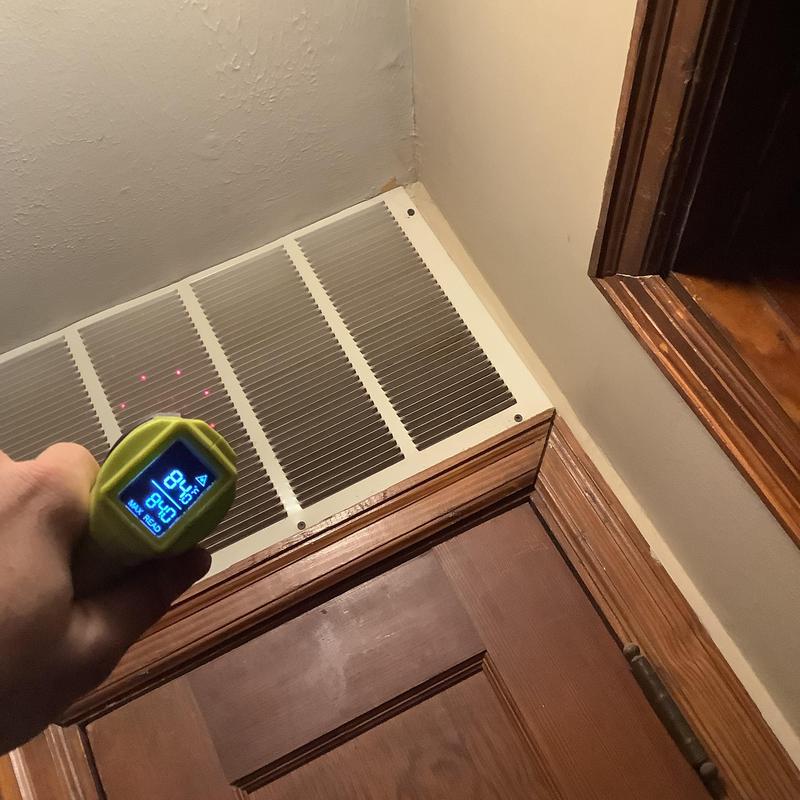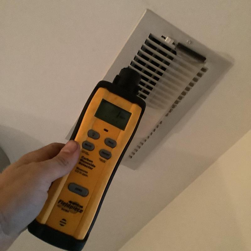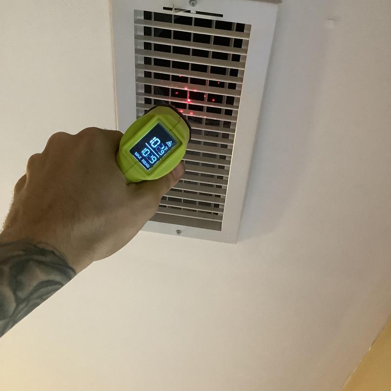 Solace Heating and Air conducted HVAC service in Raleigh, NC, which included temperature and airflow testing at ceiling vents using specialized meters. The technician also inspected and tested components inside the furnace, and replaced the air filters with new Filtrete 16x20x1 filters to maintain system efficiency.