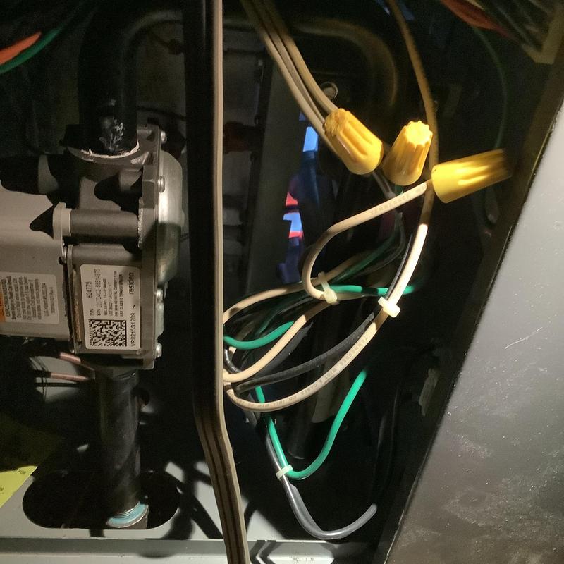 A technician in Memphis, Tennessee repaired a thermostat wire short caused by loose electrical tape at a junction box. They replaced the tape with wire nuts, restoring normal thermostat function and system operation.