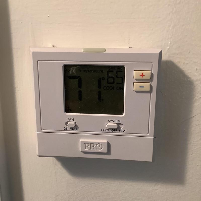 A technician replaced an Ecobee thermostat with a standard model in Memphis, Tennessee. The service included verifying proper function of the heat strips and heat pump. The system is now operating and cooling as expected.