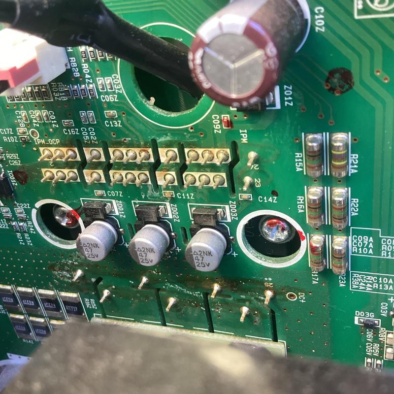 Solace Heating and Air inspected an outdoor HVAC unit in Memphis, Tennessee. They identified shorts on the inverter drive board caused by moisture and power outages. The technician recommended replacing the drive and added a surge protector to help prevent future electrical damage.