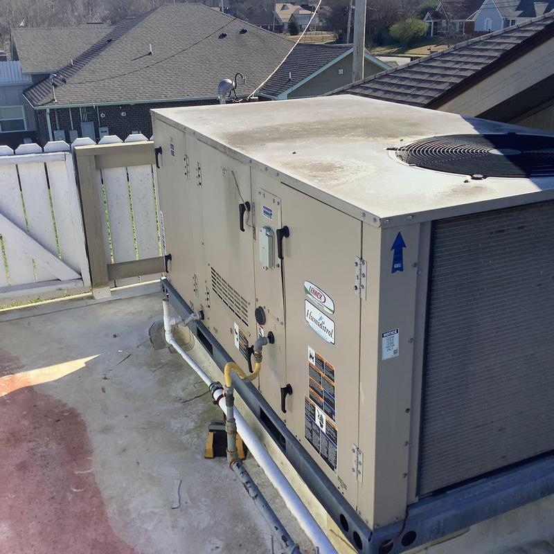 A technician from Solace Heating and Air inspected a commercial HVAC unit in Horn Lake, Mississippi. They confirmed normal cooling operation, secure electrical connections, and correct refrigerant levels. No issues were found during the evaluation, and the system continues to run as expected.