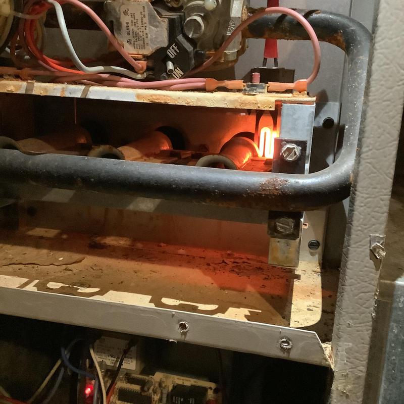 A technician replaced a faulty hot surface igniter on a heating unit in Southaven, Mississippi. The igniter received the correct voltage but failed to activate. After the replacement, the system resumed proper heating operation. The technician also provided an estimate for a maintenance service plan.